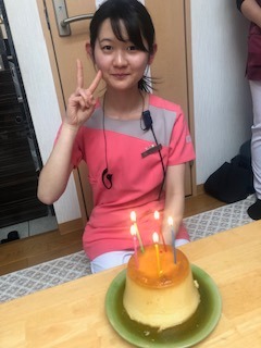 まさみ先生より大きなプリンを用意して頂き、早速スタッフでお祝いをしました!!