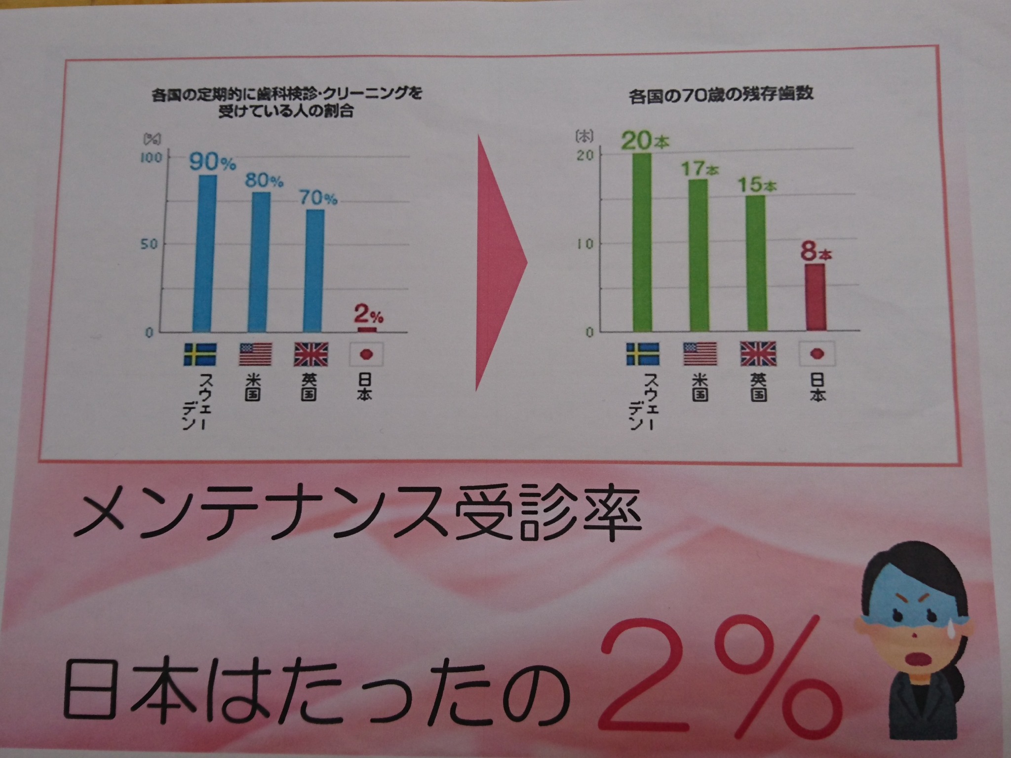 日本の歯科定期健診受診率は、他の先進国と比べ著しく低いと言われています。