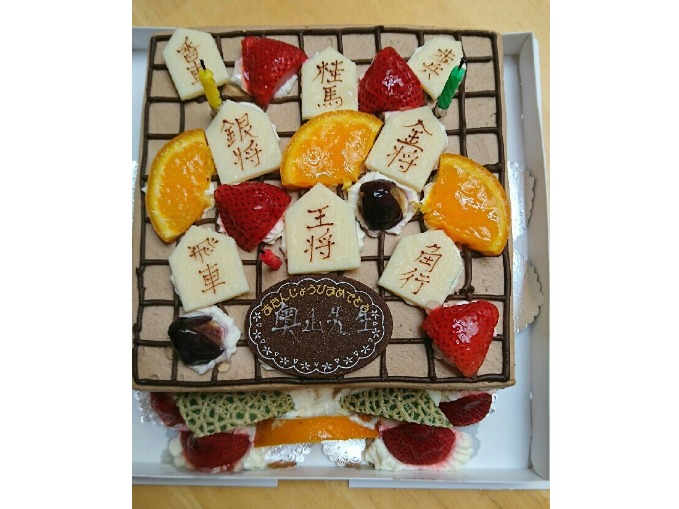 奥山先生は山形出身のため、まさみ先生より将棋盤がモチーフになった大きなケーキが!!✨