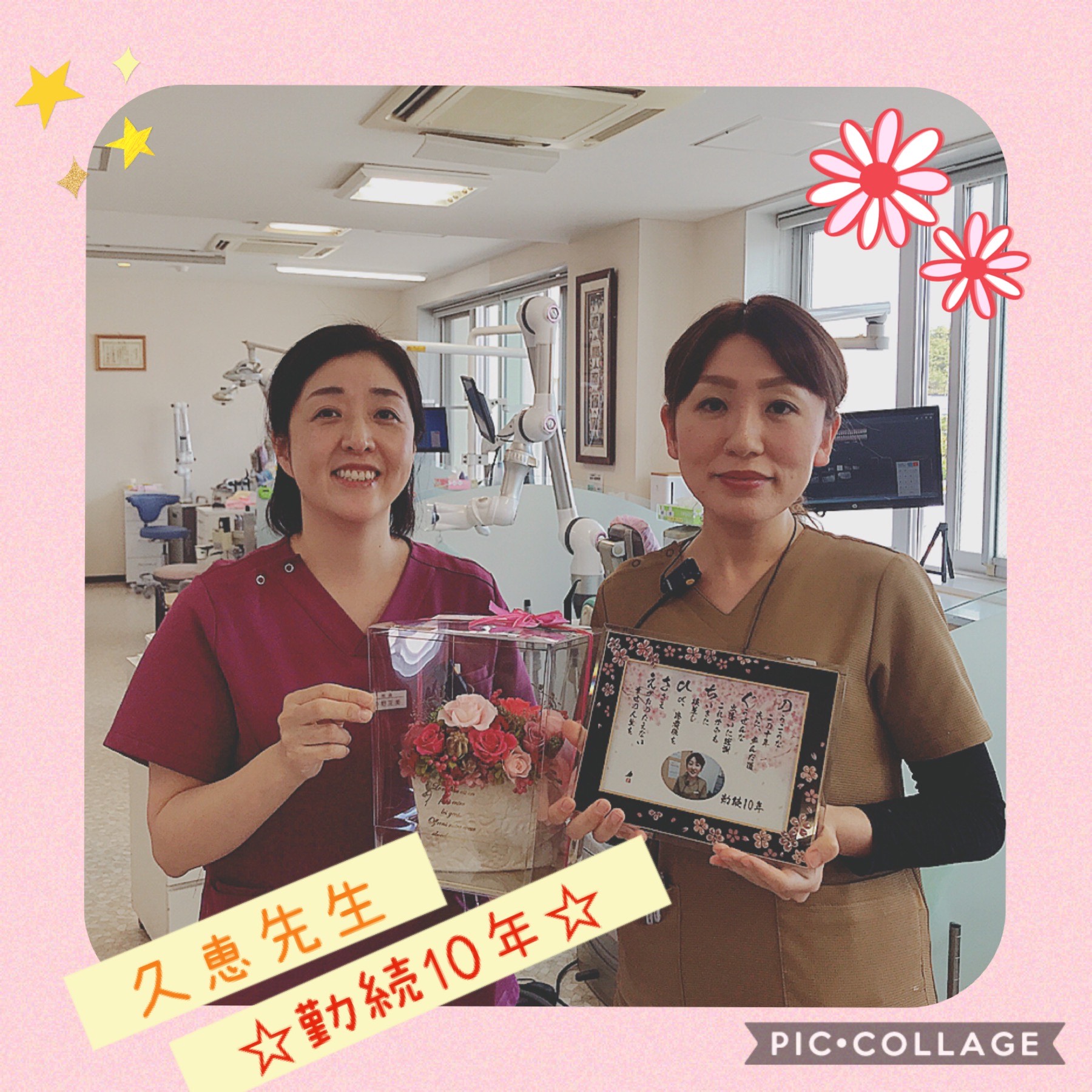 さて、日曜診療の5月31日は、副院長 久恵先生の勤続10年目の日でした。