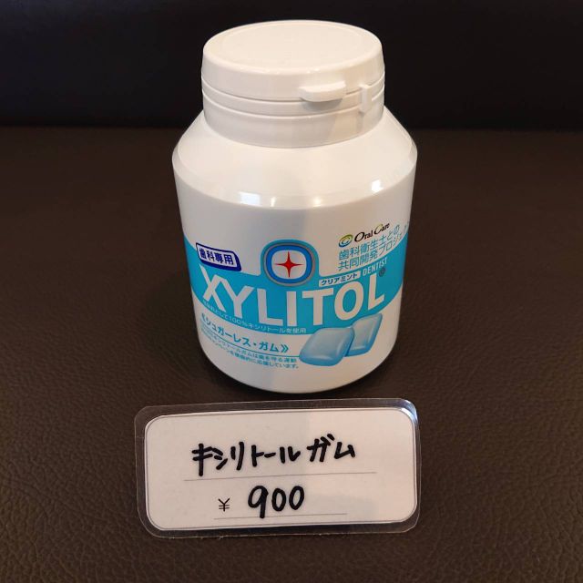 歯科専用のキシリトールガムは、甘味料としてキシリトールが100%使われており、虫歯の原因になる酸を作らない糖で歯の再石灰化を促進します。市販品は糖質も含まれているのでキシリトールの効果を十分に期待することができません。また、唾液を出すためには、味がなくなっても5分~10分噛み続けた方が良いです。