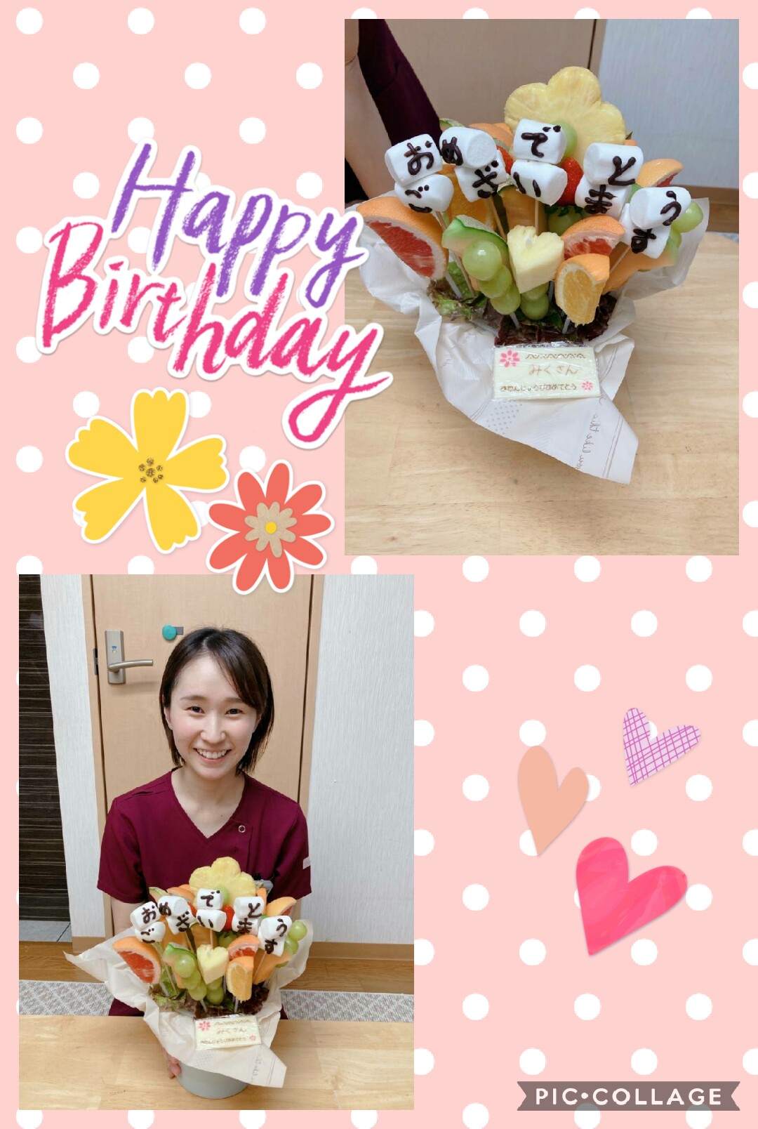 9月30日は歯科衛生士の福井さんの誕生日でした🎂甘いものが苦手な福井さんのためにまさみ先生がフルーツの盛合せを用意してくださいました。