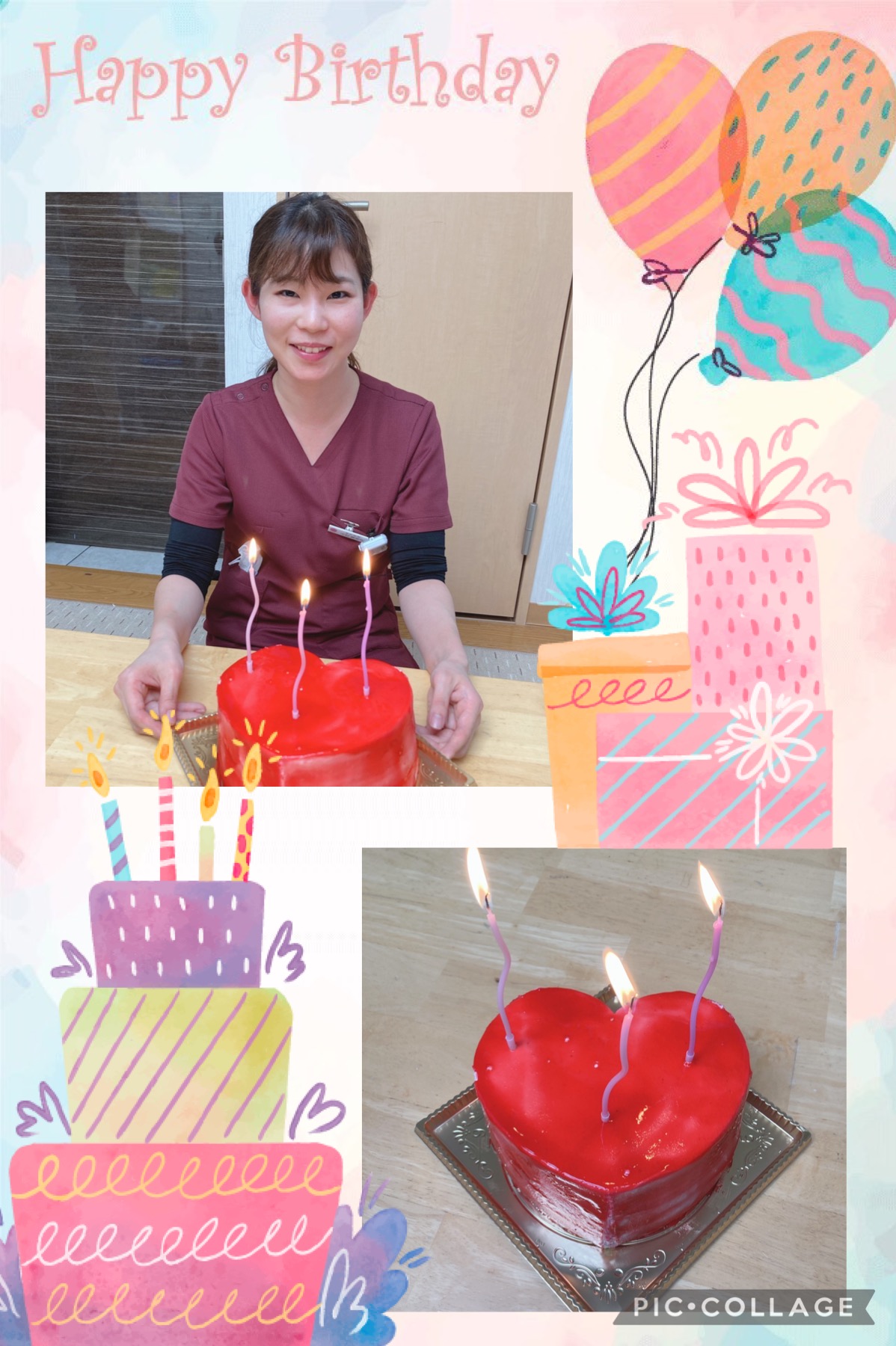 スタッフみんなでお祝いし、まさみ先生からは可愛いケーキのプレゼント🎂