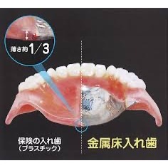 それが金属床になると厚さがレジンの3分の1の薄さで作ることができます。