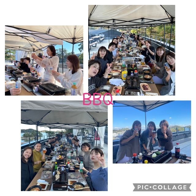 お昼は屋上席で松島の綺麗な景色を眺めながらのBBQ大会、美味しいお肉、海鮮、牡蠣のカンカン焼きなどレクレーションを楽しみながら、お腹いっぱいいただきました😋