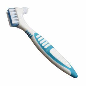 入れ歯のピンク色の床の部分・バネ・歯の溝を丁寧に優しく磨きます。