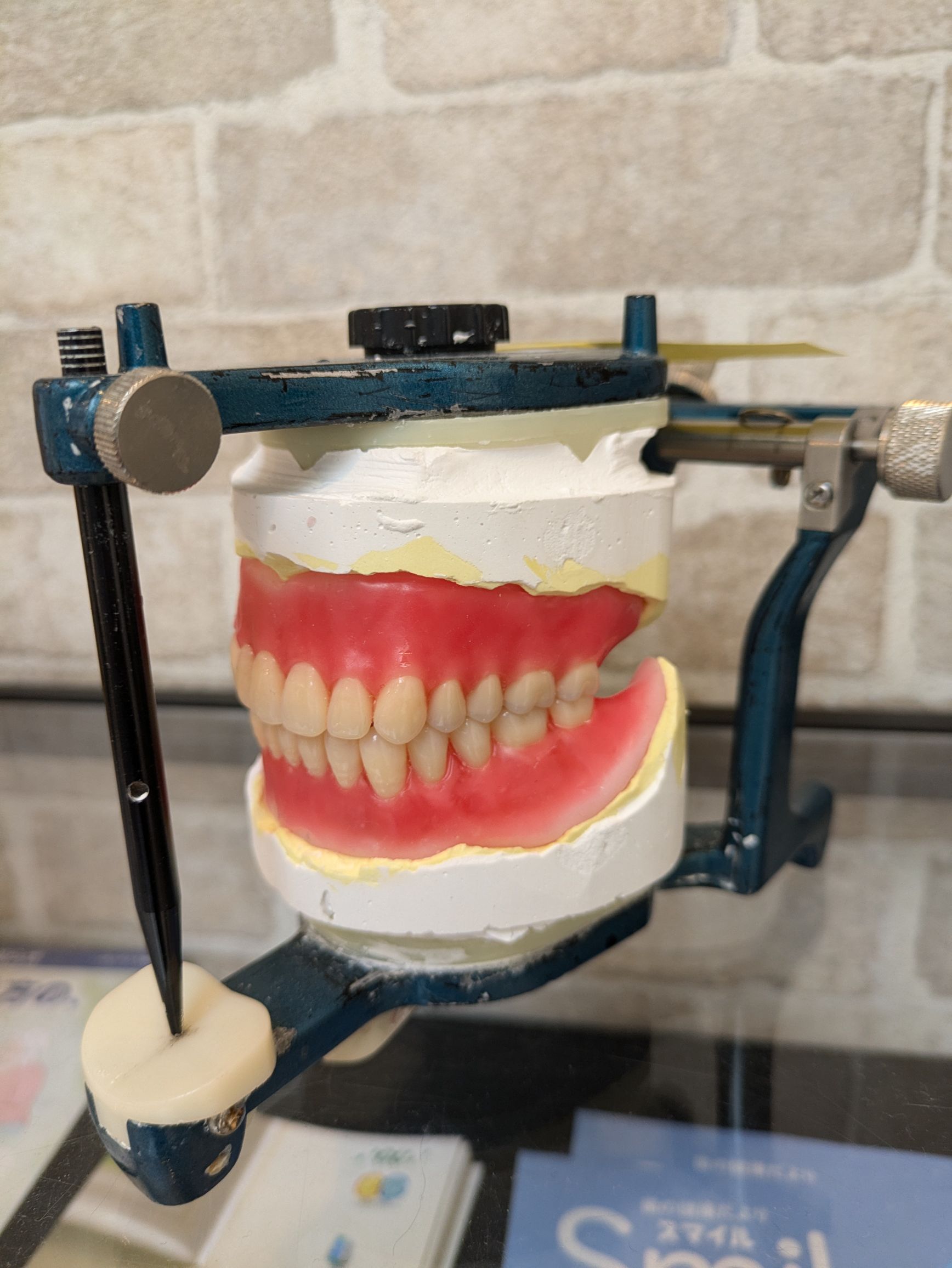 ロウでできた義歯で、歯のサイズや歯並びなどの最終チェックをします。