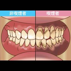 ニコチンは体を守る免疫機能を狂わせるので、病気に対する抵抗力が落ちたり、アレルギーが出やすくなります。更に傷を治そうと組織を作る線維芽細胞の働きまでを抑えてしまうので手術後も治りにくくなります。また、ヤニという形で歯の表面に残っているので、歯がザラザラして菌が張り付きやすくなり、いつまでもお口の中や歯肉にニコチンが染み出し続けることになります。