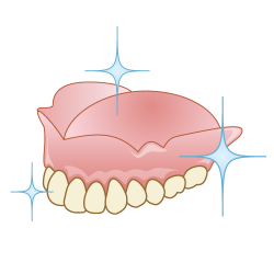 咀嚼時に動いたり、外れやすかったりする場合もあり、義歯安定剤が必要になることも。